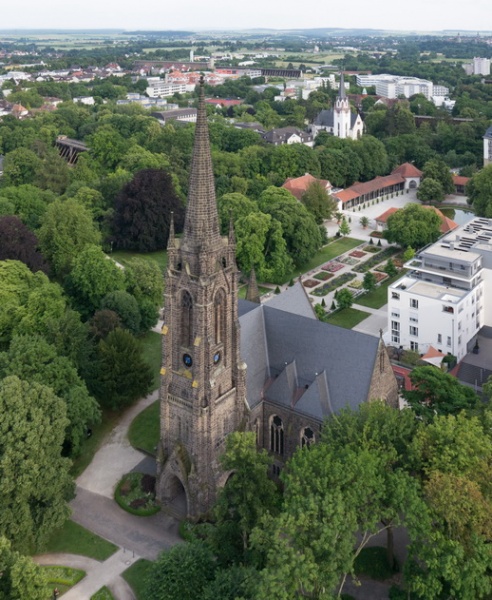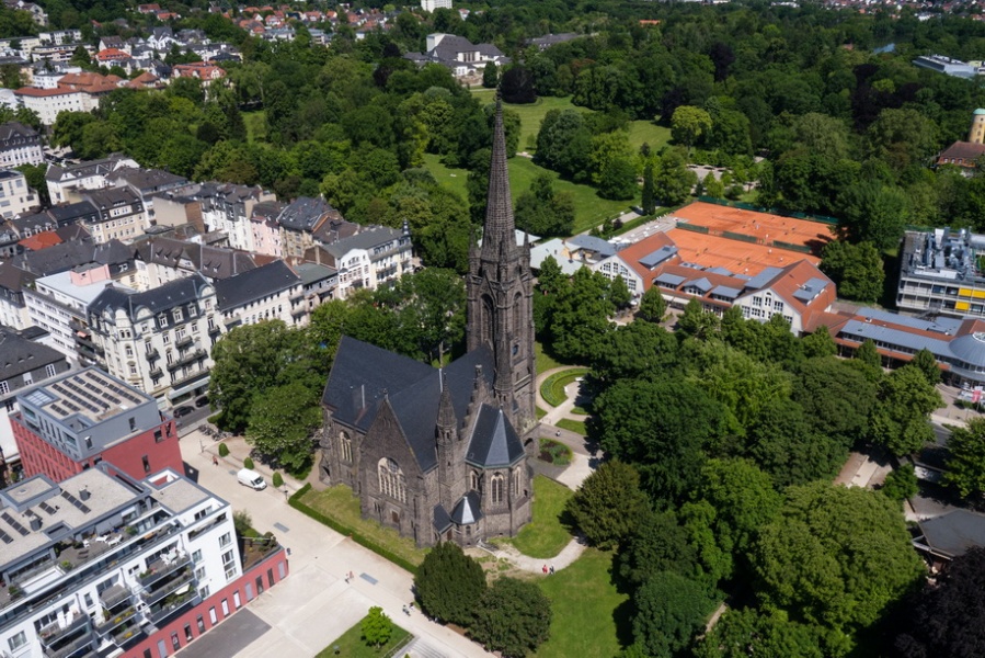 Mit einer Fotodrohne haben wir Aufnahmen von der Dankeskirche und der Johanneskirche gemacht:
